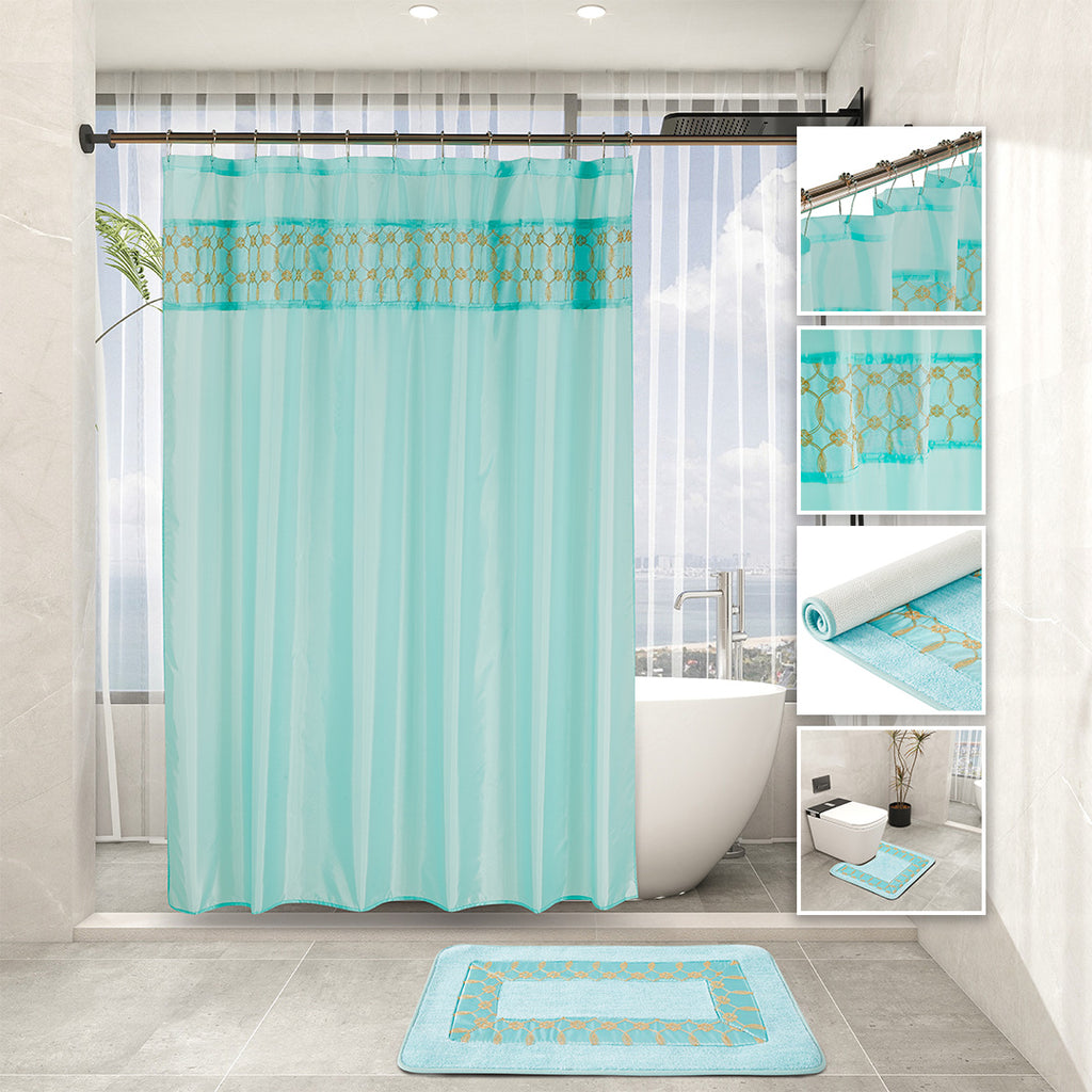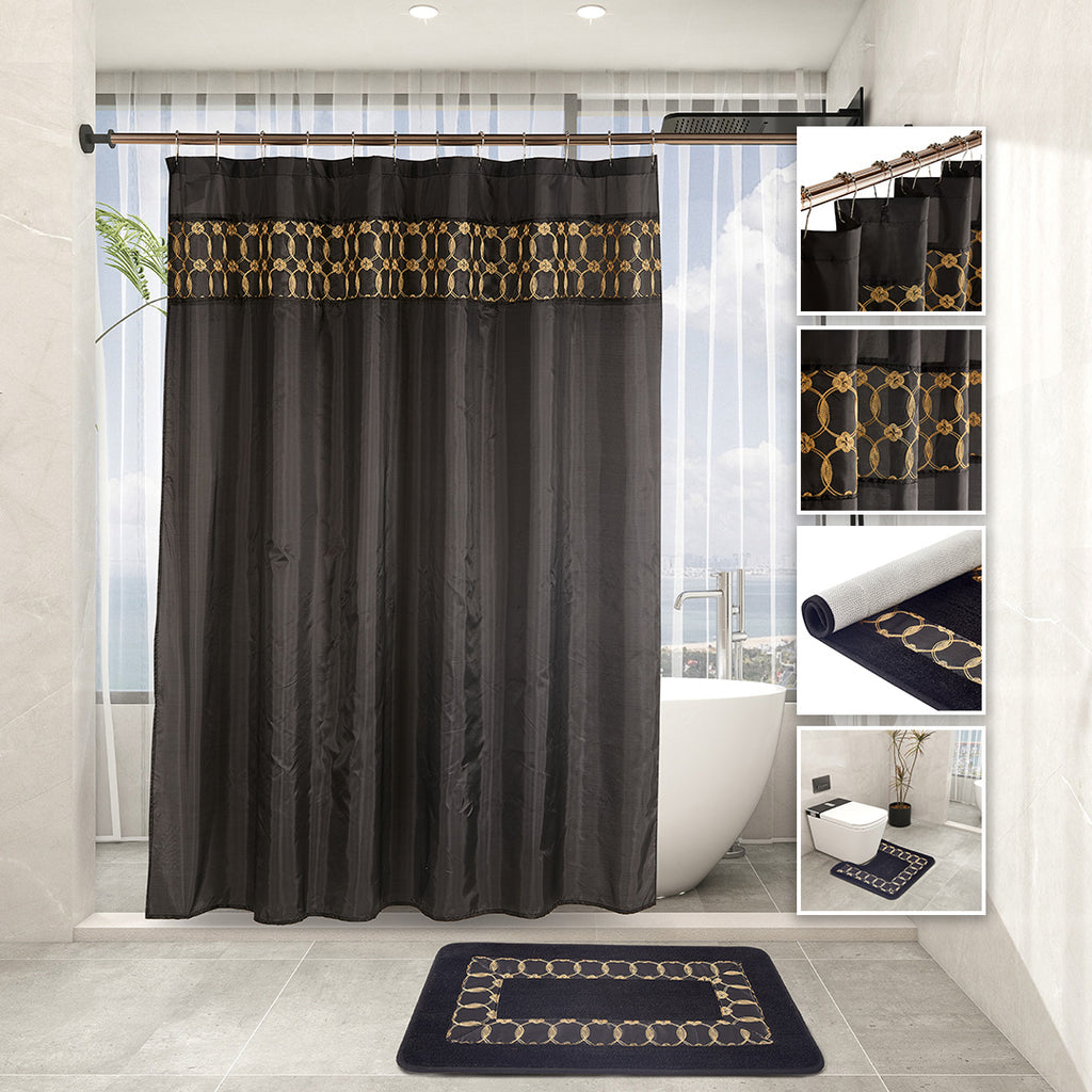Transform your bathroom into a space of pure comfort and coordination with our 18PC Complete Comfort Bath Set. This luxurious set features matching shower curtain, rugs, and towels, each designed with elegant embroidered details and soft-touch materials that add warmth and sophistication. Available in eight beautiful colors (Aqua, Black, Burgundy, Lilac, Grey, Navy, Oxford, and Light Taupe)to complement any decor