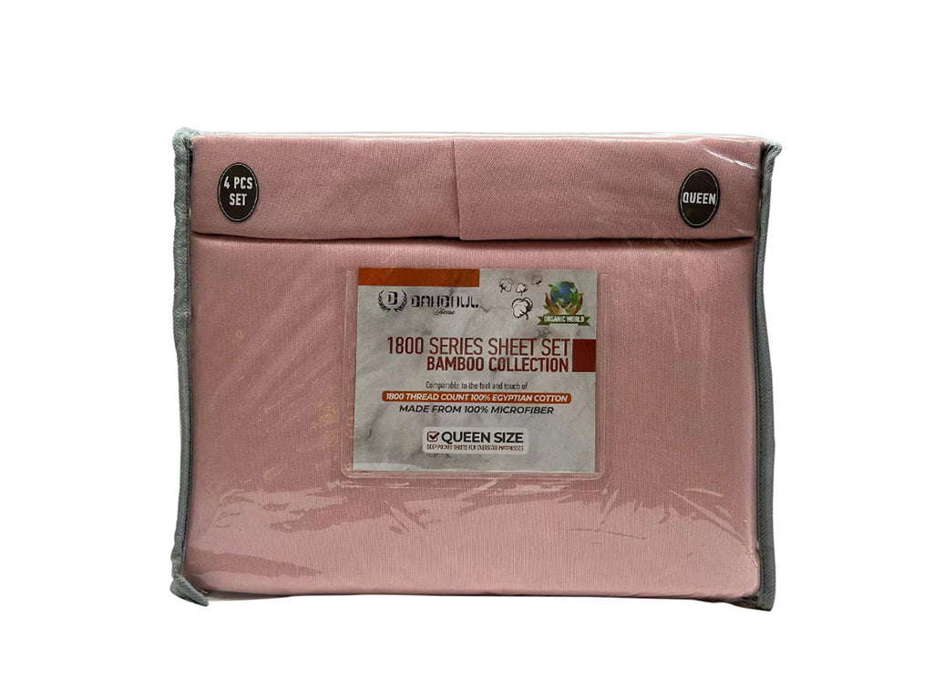 Enjoy soft, wrinkle-free comfort with the 4 Piece Bamboo 1800 Series Bed Sheet set. Each set includes a flat sheet, fitted sheet, and pillowcases, available in solid colors. Perfect blend of style, durability, and value.